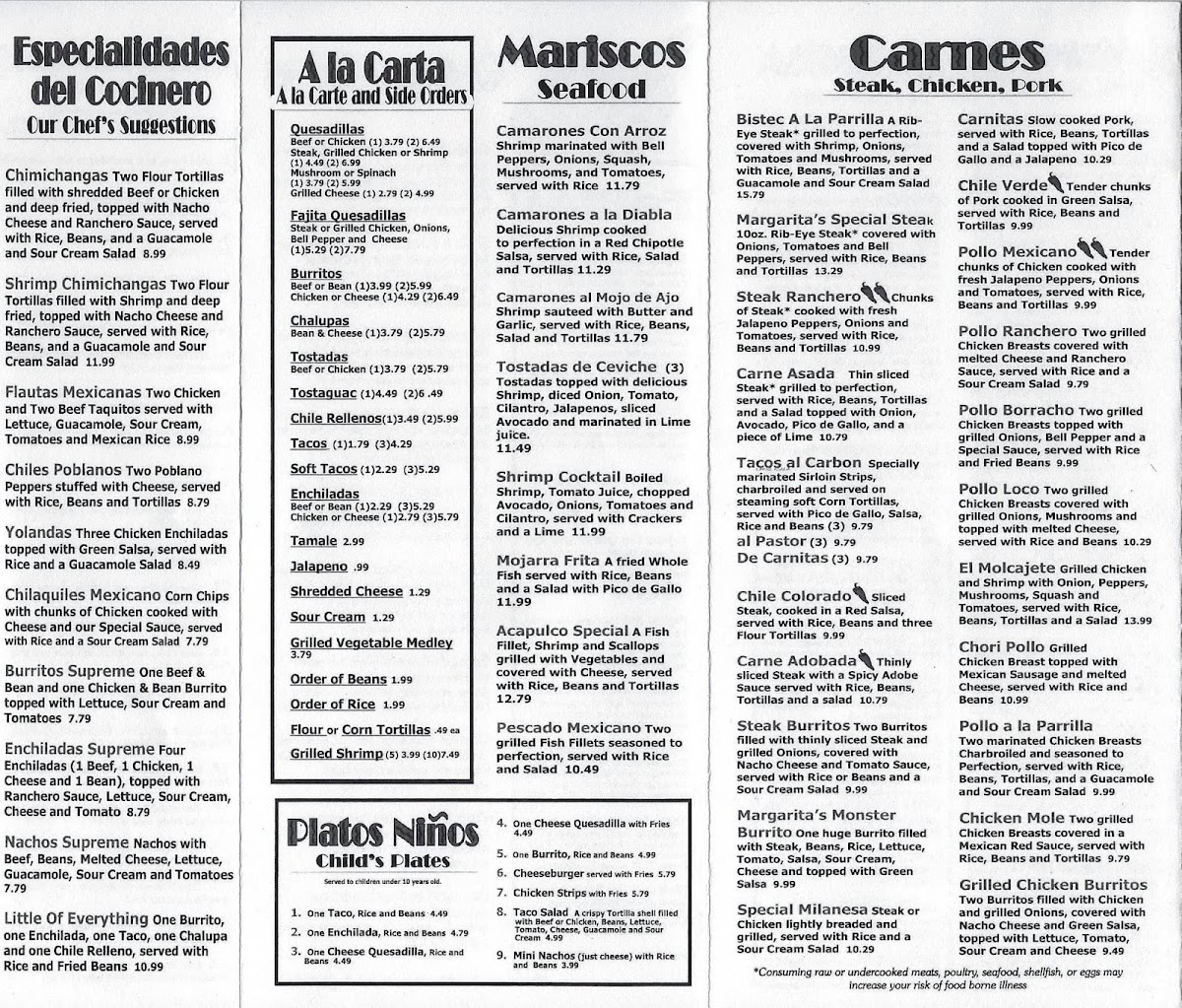 The menu features a diverse array of tantalizing dishes, each crafted to perfection. Whether you're in the mood for a quick bite or a leisurely meal, Margarita’s caters to all needs with great efficiency.