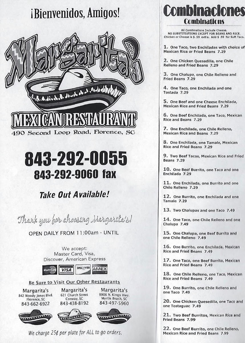 Welcome to Margarita's Florence, located at 490 2nd Loop Rd, Florence, SC. This vibrant eatery is not just another Mexican restaurant; it is a delightful culinary retreat that elevates traditional flavors. Guests rave about the freshness of the ingredients and the speedy service. As one reviewer noted, it offers a dining experience that surpasses what you might find during a Mexican vacation.
